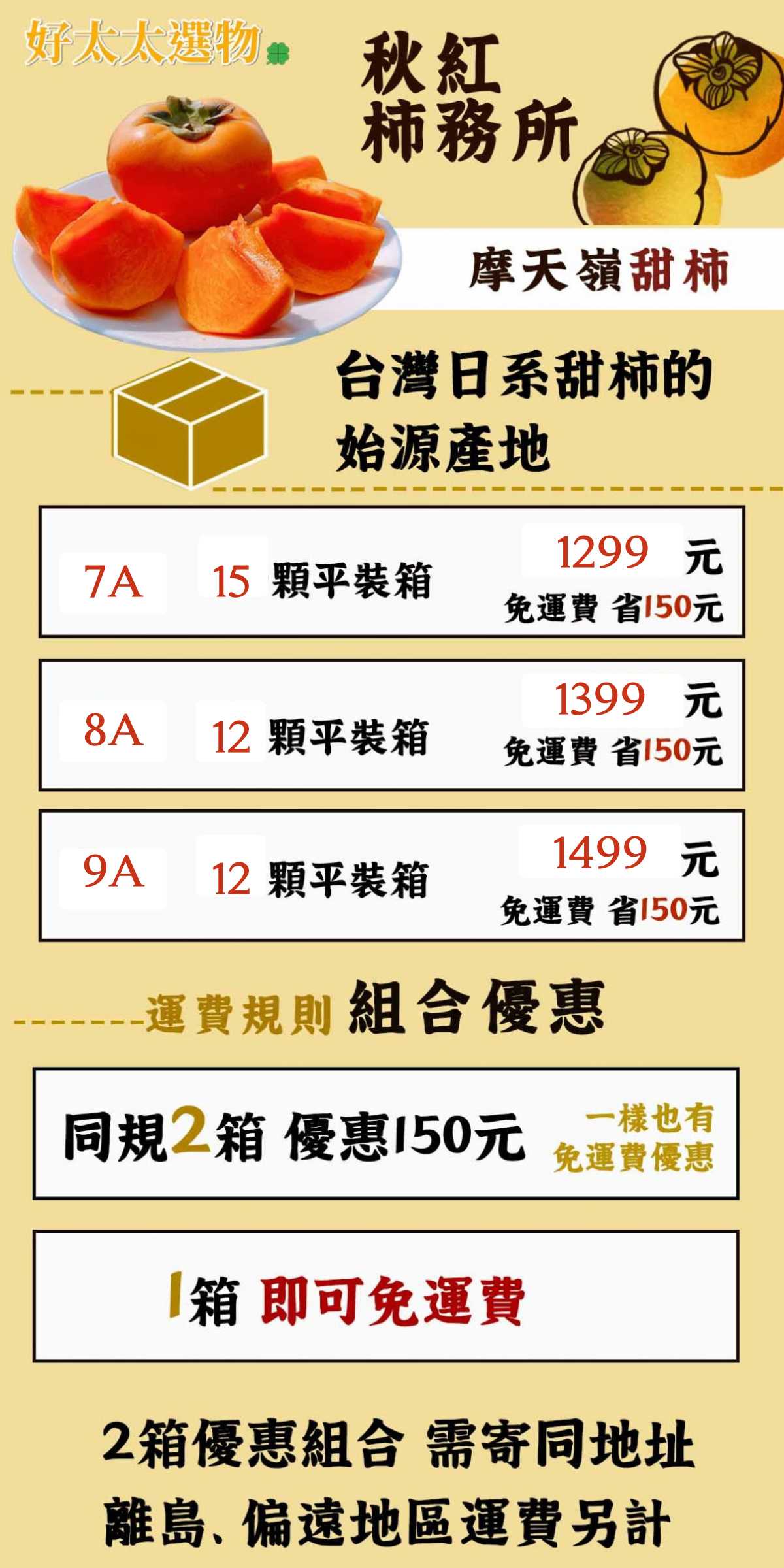 今年 我們的甜柿依「重量」可分為4種規格: